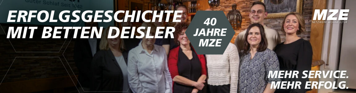 Gemeinsam mit MZE konnte Betten Deisler die Weichen für ein weiteres erfolgreiches Jahrhundert des Traditionsunternehmens stellen. Eine Erfolgsgeschichte von vielen, die wir in den letzten 40 Jahren unserer Verbandsgeschichte begleiten und mitgestalten durften.
